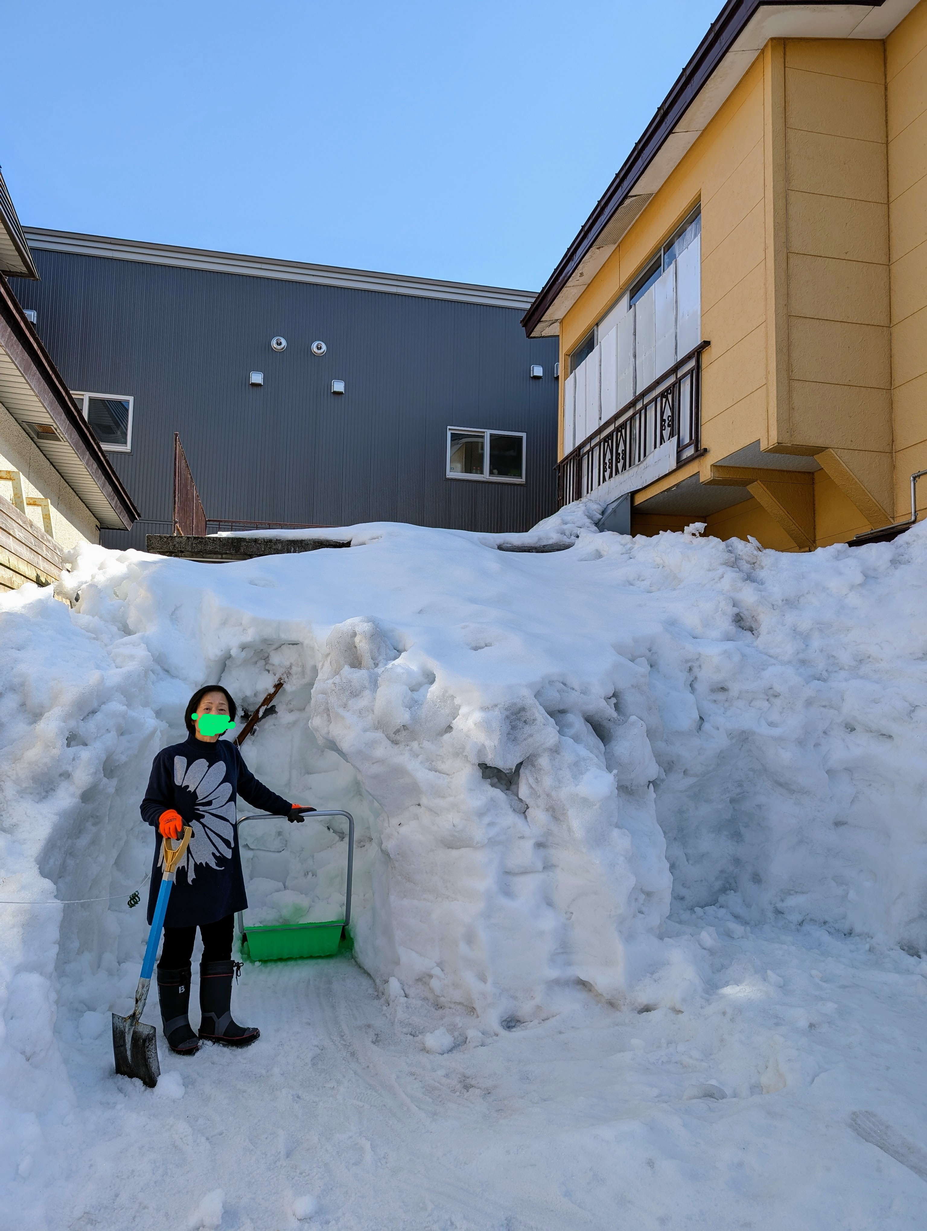 全国放送に取り上げられるほどの雪の多さに今年の誕生日で75才を迎える私の体力は・・・主人は剣道とマラソンで壊した膝や、50代で死にかけた心臓病が有るので無理をせず出来る範囲で雪片づけをしてくれますが・・・到底それでは解決しない雪の量。屋根雪下ろしには私、相変わらず孤軍奮闘しています。毎冬手伝いに来てくれる孫たちが成長して、以前より上手に雪片づけをしてくれるのが頼もしい長女の孫太郎はほぼ雪片づけをしたことが無いらしく、要領が悪く・・・しかも途中からつららを的に雪玉をぶつけたりで遊びだしてしまい・・・「おまえは小学生か」と声なき声で呟いてみたり。現在、次女孫太郎や私にアドバイスされながら経験値を上げて雪片づけ上達途中です。ただ・・・今の私には、とんでもない量の雪を我が社のトラックに積み上げる力が無く。駐車場が1メートル以上の雪にうもれ・・・しかも会社とネオン工場と母屋の屋根雪も そこに落とすので、すごいことになっています。工場の屋根雪も心配ですが今の私の体力ではそこまでは手が回らない。工場長一人で除排雪していますが、屋根までは手が回りません。私は体中の筋肉が落ちているのと足の調子が悪いのとで一日に2回が限界。それでもトータル3~4時間は雪片づけに時間を費やしているのに若い頃の半分も出来ていません。このとんでもない雪は、いつ落ち着いてくれるのでしょうか。。。暗黙の了解で道幅の半分を雪かきするようにしているのですが、毎朝、家の横の中細道を10メートルほど雪かきしてくれるお隣さん。その道の先にある車庫前までの道をさらに、その隣の奥さんが半分より多めにやってくれてたり・・・ご近所さんに助けられながら今は頑張っていますが、お陰様で会社の事務やデザインの仕事が出来ていません。いつもなら正月休みに一仕事しているのですが・・・とんでもない雪片づけの体力回復にゴロゴロするの費やすのでちっとも片付きません。食事の準備もさぼりがちの私。麺類好きの主人は塩分摂りすぎで医者に止められているのにそうめんやインスタントラーメン生活。。。ご飯と納豆にしてくれと言ってるが、私が一日に一度は菓子パンを食べずにいられないのと同じで、一日に2度も麺類を食する主人でして・・・体調崩したりしたら私のせいよね食事の準備、手抜きだもんな―。アレマ今年初のブログが「ぐだめき」でスタートなんて。とんでもない雪のせいでとんでもないスタートになっちゃったぜ。皆さん(って誰の事)今年もよろしくお願いします。