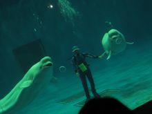 今日は近くの水族館へ行ってきました。年パス持っているのでガソリン代とちょっとのお小遣いで気軽に行けます^^幸せのバブルリングいつもショーはこの2頭で行うのですが今日は水槽になんだかもう一匹。まだら模様の黒っぽいイルカさんがいます。「子供なんじゃない?」チビの言うとおりでした。もうすぐ3歳のオスのボク、まだ芸はできないけど見習いとして一緒の水槽へ入れられたそうです。可愛いのが、このボク、ショーが終わったとたん、お母さんイルカのそばへくっついて離れず仲良く泳ぐんです。お母さんのお仕事の間は近づいちゃいけないのがちゃんとわかってるんですね。 アシカショーほうも、今日は人気者のメスのアシカ「アブちゃん」の娘「ニーナ」のデビュー舞台でした。数年前会った時には、何もできなかったのに。さすがにお母さんほどの風格は無いのですが一生懸命ジャンプや逆立ちを上手にこなします。この水族館の人気者たちも、世代交代していきます。チビ姫は、私から何を受け継いでくれるんだろう。歓声をあげる可愛い子供たちの声を聴きながら、私もこの楽しそうな家族連れの一員になれた幸せに感謝さーて明日から、またがんばるかあ!★いつも暖かい応援感謝です。励まされてます。★人気ブログランキングへケータイの方は上の文字部分をポチっとな