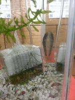 今朝は窓の外、雪が舞ってます。風がびゅうびゅう。日本列島冬に逆戻りさてチビ姫様、ただいま図工でメッセージボードを作ってるそうです。糸鋸で木の板を好きな形に切り抜くのですがチビ姫のモチーフは、わが家で飼ってる川魚ヨシノボリの「ヌシ」さん。 聞けば、私がヌシの餌やりをよく忘れるので、メモを貼れるように作ってくれるんだそうです。木を切り抜いたあとは色を塗るらしいのですが彼女が悩んでいたのは「ヒレ」の部分。「だって、ヒレには色がないんだもん。どうしよう」私はにんまり。「色が無ければ、そこは塗らんでもええよ」「えっ?でもそれだと木の色のままじゃん」「それでええよ。木の色(地の色)のままが透明ってことになるよ」うーん。ちょっと小学生には難しかったかな。以下、話がそれますが-------------私のいとこがまだ幼稚園児のときのこと。「雨の絵を描きましょう」という時間に彼の画用紙はいつまでも真っ白のまま。業を煮やした先生が水色のクレヨンでこう描くのよと手本をみせると彼はこういったそうです。「せんせい、だって雨は水色じゃないよ。色がないよ?」たしかにねえ。実は「透明」の表現は難しいことだもんね。---------------------------------姫にはヒレの筋のとこだけ線で描くといいよとアドバイス。さあて、素敵なヌシのボードは完成するのでしょうか。たのしみですそうそう、昨日の姫様のひとりなぞかけ「魚の解剖」とかけて、「シロイルカのおでこ」と解く。その心は....どちらも抵抗があるでしょう。だ、誰がそんなうまいこと言えと...☆スマホの方は画面下をPC版にしてポチポチ☆いつも本当にありがとう。 人気ブログランキングへ(淡水魚)ミックス・ヨシノボリ(3匹)