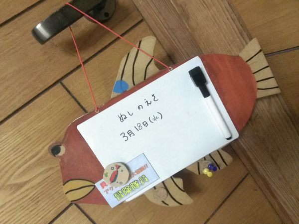 以前の日記に書いた図工の時間に作ってたメッセージボードが完成しました!じゃーん!モチーフは我が家で飼ってるヨシノボリ(川魚)のヌシさん。「これなに?」学校のみんなも先生も、疑問符だらけだったらしいですがもうね、もう・・・・・・これ、わかる人が見たらおおウケすると思う。だって、だって本物のヨシノボリにめっちゃそっくりなんですもの。ヒレの形といい、くちびるといいよく特徴を捉えています。何より、すっとぼけた目玉が最高!ときおり輝く、背びれの青い線まで忠実に再現されています。長方形の木の板から、よくここまでデフォルメしたなあと。親バカだけど超感心。マグネットもあるし、押しピンを挿すコルクまでちゃんと貼ってあります。ああ、チビ姫、よくできてるよ。実用性も高いし。ああもう、チビ大好き☆スマホの方は画面下をPC版にしてポチポチ☆いつも本当にありがとう。 人気ブログランキングへ※子供の作品や作文はすべて本人の許可をとってblogに掲載しております。