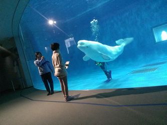 はい、本日はいつもの水族館へ。ファンクラブ(年間パスポート会員)特別企画チビ姫がずーーっと楽しみにしていたシロイルカぷよぷよ体験毎回、大人気のこの企画何度かチャンスを逃し、ようやく実現何を「ぷよっ」とするかって?それはですねえ...シロイルカの お・で・こ冷たい海で暮らす彼らは脂肪が厚く、ショーでは毎回、水中でダイバーさんがおでこにぷよっと触って、外の説明員の方が「カマボコやハンペンみたいな感触ですよ」と解説されるのですが...実はチビ姫には食物アレルギーがあるのでかまぼこやはんぺんは食べられませんだから、いつかは本物を触らせてやりたいなあと。さて今回、私たちのお相手をしてくださったのは前回の海獣トレーナー体験のときと同じくアクアス生まれの男の子「シーリャ」君。少し灰色なのはまだ5歳だから。(約10年で白くなるそうです。)消毒した手でそーっと触ります。「ぷよっ」わお私も触らせていただきましたがかまぼこよりも弾力があり、まるでゴムまりのよう。「すごーい。ボールみたい♪」チビ姫も大喜び。そのあとチビは握手。私はキャッチボールでお相手していただきました。 ヒレのなかにちゃんと5本の指の骨を感じます。ボールはめっちゃ上手に受け止めて投げ返してくれました。ショーの本番最中にもファンクラブ特典で水槽の上をみせてもらったり、今日はいたれりつくせりのイルカ三昧。私もようやく姫の念願を叶えてやることができ、大満足の一日でした。午前中には体験スクールに参加してきたのですがその模様は、また後日。今日もしゃーわせな一日に感謝☆スマホの方は画面下をPC版にしてポチポチ☆いつも本当にありがとう。 人気ブログランキングへしまね海洋館アクアス HPはこちら年パスとってもお得ですよん♪