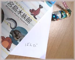 去年遊びにいった宮島水族館の記事に鹿の「ばんび」くん(本物)からのコメントをいただいたので、お礼にバレンタインにチビの手作りチョコをお送りしたことを書きましたが → こちら昨日、ばんびくんからお礼のお手紙がきました。※パンフとキーホルダーは当時のお土産です。手紙は、私宛とチビ姫あてに2枚。チビあてのほうには、チョコのお礼と「魚のことや海の生き物のことが 好きになってくれたらうれしいです。」「僕も、海の中の楽しさを 伝えられるように 頑張ります。」とありました。ばんびくん、わざわざ本当にありがとう。偶蹄目なのに、ひずめでPC打つのは大変じゃなかったですか?私たちが余計なことをしたために、館長さんに「ブログに書き込みをするな」とか怒られませんでしたか?でも私とチビ姫にはとっても楽しい思い出になりましたよこのブログの読者さんもぜひ「ばんび」くんに会いに行ってあげてくださいね。週末や祝日は来られるみたいです。可愛いアシカやコツメカワウソとも会える宮島水族館 みやじマリン HPはこちら☆スマホの方は画面下をPC版にしてポチポチ☆いつも本当にありがとう。 人気ブログランキングへ
