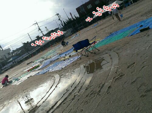とゆーわけで、小学校最後の運動会ぶじ終わりました。before(7:30 ごろ)after(15:30ごろ)なんということでしょうピーカンです。快晴です神様はチビたちの味方です。PTAの役員さんと先生がたが懸命に水を吸い出し、土を入れてくださったおかげで校庭はこんなに綺麗に。6年生の目玉は「応援合戦」配点が一番大きい種目になります。赤・黄・青の3色で色別対抗。姫様は青組。夏休みから歌や踊りを考えて、衣装や飾りを準備、看板を描いて..それぞれが得意な分野を受け持つのです。姫はキャラクター係。看板を描きました。2学期は下級生に指導が大変だったそうです。お揃いの青いミサンガを手首に巻いて一致団結。さあ本番。制限時間は4分!さて結果は...じゃらじゃら、ばん!残念!応援合戦1位はならず総合結果です。※黄組まさかの1000点超え(紙足してます)青組は惜しくも2位。残念。悔しくて泣きだす6年生も..・・・あれは初めての小学校の運動会。マメみたいな1年生のチビたちがほにゃほにゃ やってる後の6年生のお兄ちゃん、お姉ちゃんの演技がとてもまぶしくて...それは、たんに体つきが大きいとかじゃなく「たったの5年であんなにしっかりして、責任感を持ってがんばれるのかー」とわたしは目をまるくしたものです。そして5年後、チビもまぶしいお姉ちゃんになりました。今回、残念ながら裏方が多く、正直あまりいい写真は撮れなかったのですが最後に6年生だけで集合写真を撮るときのなんかもう、みんなの「やりきった」顔がとても素敵で...帰宅後は、疲れたのとなんか姫がすっごい愛しくなってしまってずーっとお風呂とゴハン以外は一緒にお布団でビデオ観てました。(仮面ライダードライブ~境界のRINNE~TRICKスペシャル)ちなみに中学ではもうお友達だけでお弁当を食べるそうです。(親は応援したければ来れば?って感じ)ミサンガを大事そうに腕につけたまま眠ってしまった姫の寝顔を観ながら私はほんとに幸せで...。ああ、チビありがとうね。ほんとに・・ほんとに大好きよ大きなてるてる坊主さんもありがとうね。個人リレーはなんと2位でした。私の子じゃないのかも知れない...(笑)うっかりポチっといただけると励みになります。いつも本当にありがとうございます。(スマホの方はこの画面一番下を「パソコン版」に切り替えてからお願い