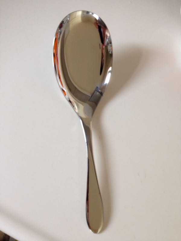 奥さんに 頼まれていた取り分け用の スプーンが来ました。思ってたより 大きかったですね。思わず 取り出して 見て 笑ってしまいました。こんなでかいの ・・・・ 大丈夫かな?でも 奥さんは このぐらいのものをイメージしてたようで「いいじゃん」の一言その届いた 取り分け用の スプーンです。でかさ わかりませんよね。なので ディナー用の 一般的な スプーンと 並べてみました。大きいでしょ~魔法使いが使う スプーン? なんでもすくう 魔法のスプーン?他と比べて 以上に大きなものは 人を興奮させる作用があるのかも・・・