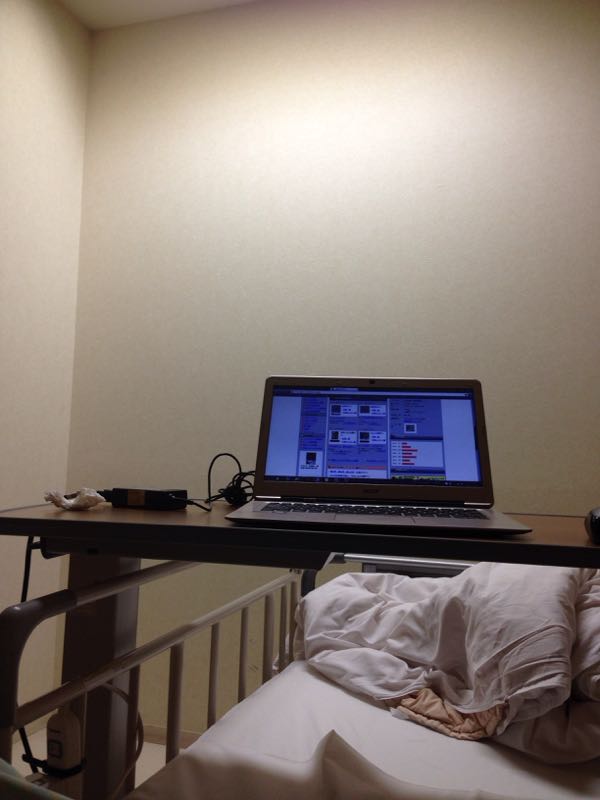 現在 病院に 検査入院中~別に どこが悪からと 入院してるわけではありませんが3日間 病院に 缶詰です。病室の感じです。つらい~なにがって・・・・6時間動いちゃだめ~ と言われて寝たきり寝返りもダメ~体よじってもダメ~これの方が よっぽどつらい。で、6時間たって やっと自由だと思ったらベットから降りちゃダメ~ だって崖の上のぽにょ?ベットの上の おれ~!なので 写真も ベットの上から~行動範囲は 狭し!なんのために 個室借りたか わからん?ちょ~ 損した気分 (笑)