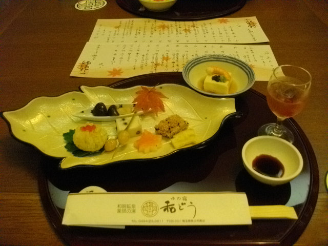 今回の和銅さんは 食事の量と質が 売り? みたいな様子だったので食事を 楽しみにしてました。部屋は前回 お伝えしたように 使い勝手の良い よく考えられた作りで快適に過ごすことができました。食事は どうだったのでしょう?まずは 先付けお刺身焼き物鍋揚げ物最後のデザート大まかに こんな感じです。椀とか 写真撮るのを 忘れて食べて しまったものも あるので全部ではありませんが 全体的な流れはこんな感じでした。量は 申し分無かったのですが 味は 私には 合わないものがいくつか有り残してしまいました。(ごめんなさい)特に私に 合わなかったものは ダシ 水 を用いて料理されたもので (特に椀 汁物)ちょっと 微妙に 味が ぼけてて? 匂いがあり 食べれませんでした。好みの違いで一概には言えませんが あくまでも 私個人の 意見です。(奥さんも 残してましたが・・・)旅館の方の対応は とても良くしていただき 気持ちよく過ごさせていただきました。まだ 紅葉の季節 秩父は 12月の頭ぐらいまでは 紅葉を たのしめるのではないでしょうか?よろしければ 参考にしてください。では (^ω^)和銅さんの楽天トラベルです。 興味がある方は 覗いてみてください。和銅鉱泉 薬師の湯 ゆの宿 和どう