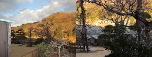 関東の雪のせいで 話 飛んじゃいました。(笑)前回の続きで 一度 2015年12月 長生館は紹介してるので ざっくりと行かせて いただきます。前回も写真で・・・ 夕方の落日が 山に 反映して とてもきれいな 色彩でした。部屋は テラスが部屋の前に部屋は14.5畳にこたつ玄関から見た全体です。部屋のお風呂は テラスから 階段で3段降りたところにあります。この位置 覚えといてくださいね。(笑)食事は 先付けからですが、 1か月前に行った時とは 全く 違ってました。お刺身も 美味しくいただきました。椀ものは 白子ですが、絶品でした。目的の イワナも いい感じで出てきていただきました。最後に炭火で焼くので くさみなく とても気に入ってます。ワラに刺さって出てくるのは すぐ近くの囲炉裏で 焼いて持ってくるからです。天ぷらも 塩で頂き レンコンさくさくで エビは コメ粉で上げてました。(サクサクです)いつもは お品書きに 名前入ってませんが 今回は 入ってました。多分 一か月前の料理とダブらないように してくださったのだと思います。茶碗蒸しには おこわが 食感よく いがいと行ける感じでした。ステーキは ヒレで 柔らかく 量も丁度 いい感じでした。最後のご飯と 赤味噌 と香の物は 品良く スッキリといただきました。で、 デザートです。これだけ頂きと お腹いっぱいで まんぞく~ 部屋に帰って お仕事、お仕事 ・・・・・なぜか はかどったので この日は就寝早めに・・・・翌朝 太陽が出る前に 起床 お風呂に入りました。秩父は 朝は 1度ぐらいで 息は白く 張り詰めた冷たい空気が うっすら朝もやが包んでました。前面の山は まだ暗くてこんな感じです。覚えてます?さっきのお風呂お風呂も この時間に取ると 古井戸みたいで こわくないですか?なにか出てきそうで フタ開けるのに ちょっと勇気が いりました。(笑)詳しくは こちらを参考にしてください。長瀞 花のおもてなし 長生館この部屋は 関東近郊であれば おすすめの部屋の一つでもあります。箱根と比べても 部屋の作りの的には 2割から3割安いと思います。料理の内容も 長瀞 秩父では いい感じだと思います。山の中なので こんな感じだと思います。逆に 舟盛りが出てきたら 興ざめしてしまいますよね。(笑)にほんブログ村