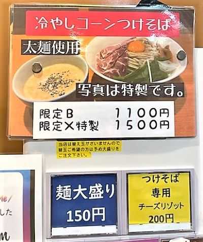 冷やしコーンつけそば販売中、と出ていたけれど、