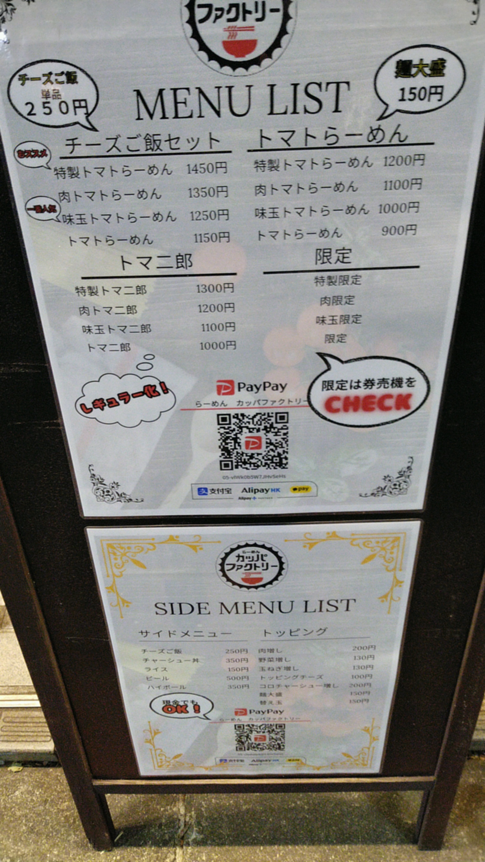 ・勘定方法:paypay(口頭にて)及び現金(券売機あり)