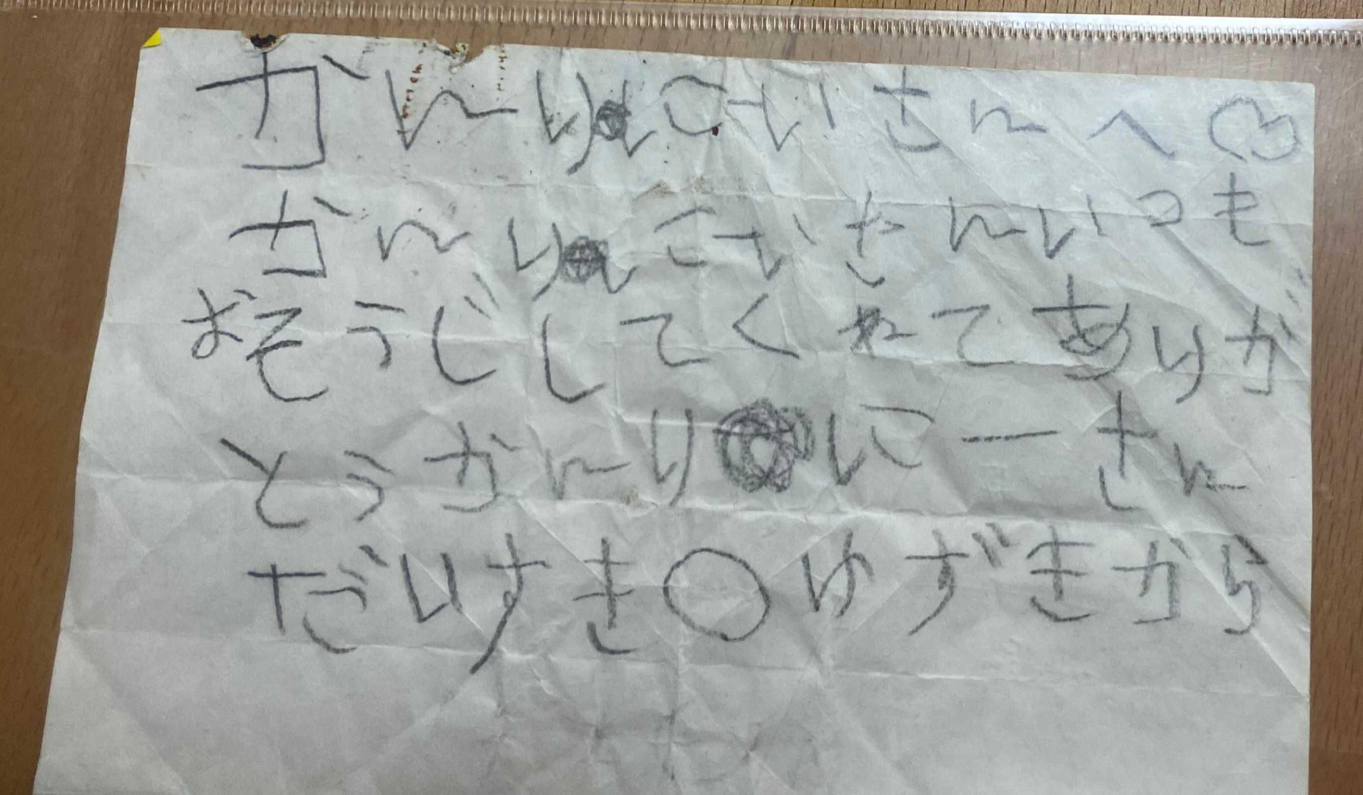 bar3bar3は9月22日がマンションの掃除:空きは管理員の卒業の日だった。5年の勤務で忘れられない贈り物をいただいた。今小学校2年生だが、4年前より挨拶を交わしてくれ手でバイバイをしてくれる女の子がいます。彼女から頂いた2つのお手紙が「お宝」一つは保育所時代、もう2つは最近のお手紙自分の仕事を小さい女の子から認められて嬉しくおもうbar3bar3なのです。年甲斐があります!
