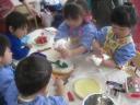 今日は年少最後の親子クッキングでした本当は懇談会と言う項目だったんですが何故だか親子クッキングまっいいっか。今日作ったものは、ケーキです。各自トッピングする材料を持って来てミンナでスポンジに生クリームを、ぬりぬりイチゴをつまみ食いしたり、チョコレートを食べたり和気あいあいで楽しかったですもみじ組も後わずか・・・良いお友達に素敵な保護者にめぐり合えて良かったですあっ先生忘れてた