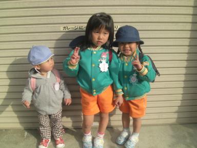 ココ最近、ブログサボってた様な感じなんだけどmixiの方にも日記を書いてました昨日から、マナヒナは年長・年中に進級しましたそして、今日は、サナのチューリップの日3人揃って今日も元気よく行ってくれましたマナは、ウメ組・ヒナはフジ組・サナはチューリップ組マナちゃんのクラスは、年少の時の元もみじの仲良しさんがクラスに居るので行くのが楽しみで、ヒナは元もみじの副担と離れてしまったからご機嫌ナナメでもでも、soraちゃんが居るから楽しいよ~と言ったら今日は機嫌よく行ってくれ、サナは、バスに乗りたくてウズウズしてました昨日は2人分の雑巾を縫って、トイレットペーパーや石鹸を持たせたのは良いけど、早すぎた家のトイレットペーパー残り3つお迎え行くついでに、買いに行かないと
