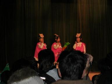 今日は、マナちゃんの発表会でしたインフルエンザで練習も、ちゃんと出来なかったけど立派でした『にんじんばたけのパピプペポ』バコ役の衣装(マナとMちゃん)登場した時は、メチャクチャ不安そうな顔をしてて私とパパも、大丈夫かな~?とソワソワしてたけど仲良しのMちゃんが気遣ってくれて演技もマナに合わせくれたりと、リードしてくれたので私たちも安心して劇を見ることが出来ましたこのおお話は12匹の豚がお手伝いもしないで遊んでばかりいる豚で他の動物に助言を受け最後にはニンジンを皆で作って幸せに暮らすと言うお話でした。劇が終わったら、『パレード』を歌って『エレクトリカルパレード メドレー』を合奏しました。凄かったです年長さんとは比べれないけど去年の年少と比べたらレベルが違って迫力があって気づいたら私、涙出そうになっててヒクヒクしてました年長さんも合奏で『カルメン』を聞かせてくれたんですけど指揮者をちゃんと見て、失敗する子も居なく最後の歌も、手話付きで歌うし、来年マナが同じ事をすると思ったら涙ナシじゃ見れないと思いました。毎回毎回、新しい事が出来る我が子を見れて幸せです来月はヒナの発表会何するか知らないけど、楽しみです