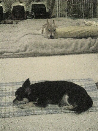 今日から仕事・・・休み中、毎日夜更かし続きだったから 昨日の夜も、「寝なくちゃ」と思いつつ、布団に入っても結局眠れず、明日からまた平日は仕事で、3ワンと過ごす時間が減るしぃ~、と、3ワンと遊んでたり・・・なので、昨日(今日?)の睡眠時間ほとんど無し。今頃、3ワン&旦那(夜勤)はグースカ寝てるんだろうなぁ。う、うらやましい・・・変わりにたっぷり寝とくです。 by うーふっ、これでまた、昼間ゆっくり寝れる・・・ by もー