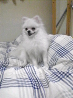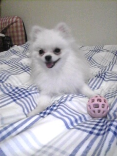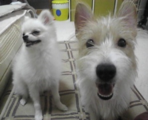 もーさんが我が家に来て間もなくの頃(半年程前)の事ですが ワンコにも赤ちゃん返りがあるのかなぁ?とよく思ってました。 もーさんとうーさんは、個人で保護犬の預かりボランティアをしている、同じ預かりママさんの所から引き取りました。 去年の5月にうーさん、6月にもーさんがやって来ました。 うーさんを引き取る時にしていた、預かりママさんとのメールのやり取りの中で、「今ウチに居るコです」と写真の添付がありました。それが、もーさん。 見た瞬間、何だか気になって仕方がなかったのですが、当時はうーさんの引き取りで頭が一杯。 預かりママさんの話しでは、当時の預かりママさん宅での、もーさんは、ビックリするくらいとっても大人しいコ。 声を殆ど聞いた事がない。 とっても我慢強いのか、うーさんと仲よく遊んでる時、だんだんヒートアップしても、うーさんにされるがまま。 うーさんが尻尾を噛んで引きずっても声一つ出さず、ずっと成すがまま。 預かりままさんが見ても、可哀相に思えちゃう位大人し過ぎるコ。との事でした。 そんなに大人しいコなら、もう1ワン増えて3ワンになっても、そんなに変わらないねっ。て事でもーさんを迎える事になりました。(もーさんを迎えようと思ったのには、沢山の事を色々考えた結果ではあるのですが…。) ところが我が家に来てからのもーさん。「大人しいコ」の要素がどこにも見当たりません。 それどころか、我が家のランキング「うるさい・騒ぐ・イタズラする・ヤンチャ・意地悪・唸る・吠える・くつろぐ・態度デカイ・甘える・ズル賢い…」あっという間に、全て一位を総取りですよ。 一番最後に我が家の一員になったのに、だれよりも我が物顔でリラックスしまくりですよ。 当時うーさんは、生後6・7ヶ月。まだまだヤンチャで仔犬様パワー大爆発中だったんですか、そんなうーさんより、行動全てがとにかく仔犬っぽく見えた、もーさん。 ポメの気質もあるのかもしれません。当時1歳ちょっとだったので、単に若さなのかもしれません。 でも当時の私には、もーが「生まれてから、繁殖不向きだとして処分される寸前に、保護されるまで」の1年、一番の育ち盛り・ヤンチャ盛りを、ブリーダーの狭いケージで過ごしていたという思いが強かったせいか、どーしても赤ちゃん返りに見えてしまって…。 預かりママさんに、真剣に「犬にも赤ちゃん返りってあるんですか?」って聞いた事もあった。 近況報告で状況を伝えると、預かりママさん、「信じられない。声も殆ど聞いた事もなく、心配になる程大人しかった、あのもーちゃんが…想像できない」と驚くばかり。 我が家にしてみたら、その大人しいもーちゃんが、想像出来ないんですけどねっ。 ホント見事に豹変してくれました。 前に「騙された」の記事でもチラッと書いたけど、 もーさん、やっぱりきっと、思ってるはず…。 「 やぁ~いっ。騙されたぁーっ!