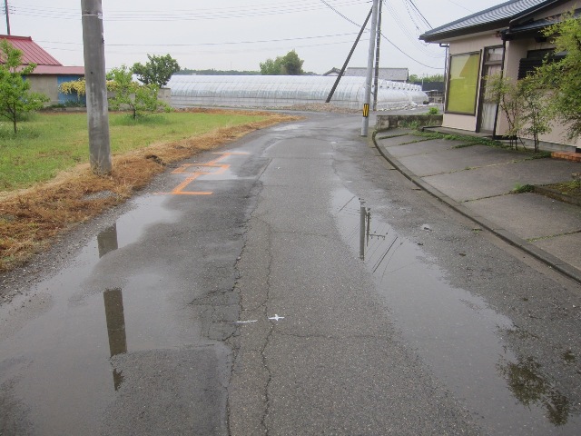 昨日くらいはお天気持つかなと思いましたが帰宅途中から雨結構しっかり降りました午前中もはっきりしないお天気予報では晴れると言ってましたが本当に・・・と思うようなお昼ご飯を食べて眠りから覚めたらいいお天気になってました気温25℃暑かった 雨が降ったおかげで通勤途中に現場に立ち寄り確認してきました道路の水たまり車が通ると水しぶきが飛びますよね大雨が降ると池になるとか通学路になっているので解消して欲しいとの要望ですどうやって直そうか安く綺麗に施工する腕の見せ所ですね上手く行くでしょうか
