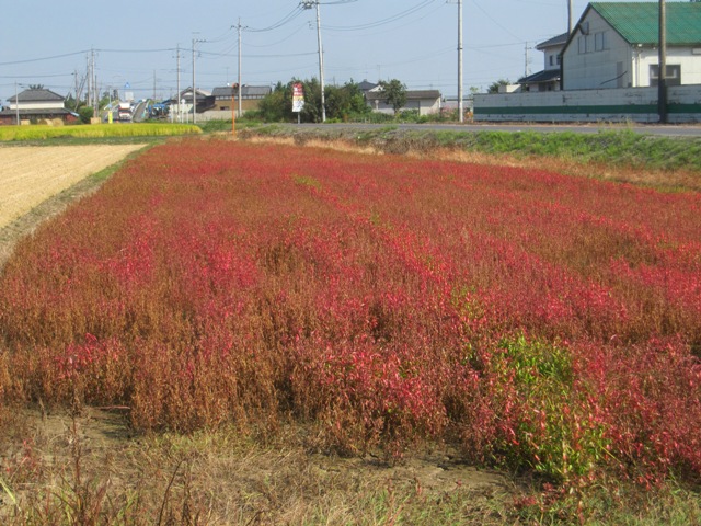 朝からとってもいいお天気今日も気温が上がります頑張ってパソコンに向かって書類を先日の現場の写真と次の見積書を仕上げお昼ご飯を食べて午後から役所へドライブ途中道路脇に真っ赤な場所がなんの花かなと思ったら花らしき物は見当たりませんこれって草なんですか秋だからもしかして紅葉草も紅葉するんですね名前のわかるかたいますか