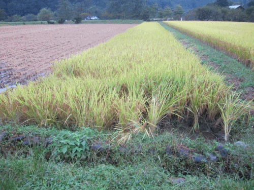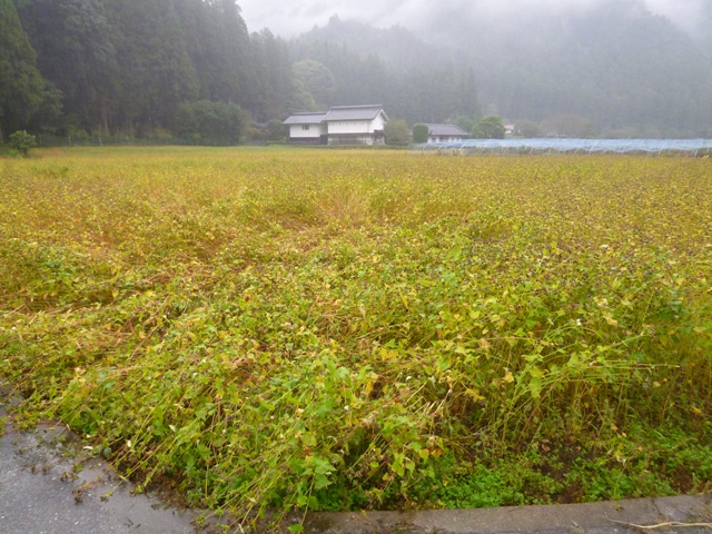 今日も朝から青空の広がるいいお天気午前中は暖か・・・でしたがだんだん雲が多くなり気温は下がる一方今はとっても寒いです少し雨も降って来ましたそろそろ上着が必要になってきますね引っ張り出さないと 温泉からの帰り道県道の途中に田園風景百選の案内板が一見、草ボーボーの田んぼのように見えますが そば畑でございますたくさんの実がついて収穫の一歩手前花の時期は白い花が絨毯のように(こんな風に)今度は花が咲いている時期にお邪魔しましょう道路を挟んで反対側には何かわかりますか我が町の名産です作るのは大変ですけどね