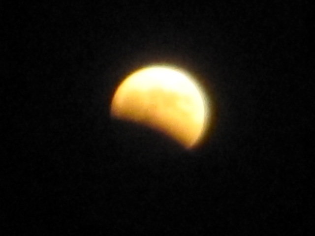 日付が変わる頃からこちらでは雲が多くなり目が覚めたら家の周りは濡れていましたそんな天気が午前中一杯午後からお天気になりました昨夜の皆既月食皆さんはご覧になりましたかブログ更新していて外を見たらいきなり始まってるし会社からの一枚急いで家に帰って「今日は帰りが早いね」と「あ~月食か」と言われちゃいましたが綺麗な赤い月が月がとっても青いからと言う歌はありますが本当に赤くなるんですね雲が出るのが遅くて見られて良かったです次は来年の4月4日また微妙な日ですね