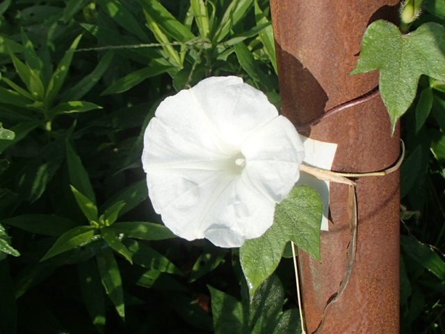 昨夜も雨が降り一時、雷が鳴ってましたが夜中には上がって朝方は霧の掛かる幻想的な世界晴れるか心配でしたがお天気になって今日も20℃超え気持ちのいい一日でした 先日の夜間工事の現場事務所の敷地にあったあさがおらしき物数本持ち帰って会社に植えておいたら見事に咲きました咲き方が淋しいですがまさか白い花が咲くとは思っても見ませんでしたあさがおの中の白い花が咲く品種なのでしょうかその辺は全くわからないので 土日はいいお天気の行楽日和になりそうです何処かに出掛けましょうか良い週末を