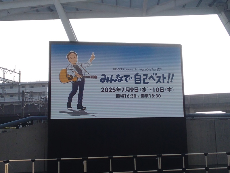 今日も朝からいいお天気昨日が暑かったせいで猛暑日にはなリませんでしたが兵庫県丹波市柏原町で30日午後2時39分国内観測史上最高気温となる41.2度を記録びっくりですねどんななのかちょっと体験したい気分ではありますがカムチャツカ半島付近を震源とするマグニチュード8.7の地震こちらにも驚きました海の近くの方は被害はなかったでしょうか3週間前出かけた先は小田和正さんのライブ2年ぶり今回はアリーナ席しかも1列目チケットを引き換えたときにびっくり◯の場所になりますメインステージの右手眼の前には花道が前も後ろも右も左も客席何人の方が訪れるのか予定より5分遅れてライブ開始1曲めから大盛り上がり小田さんメインステージにとどまらず歩きながらも歌うのでネットより目の前を何度も通り過ぎました「Yes-No 」で花道から客席(アリーナ)に降りて移動しながら歌いお客さんにマイクを向ける(恒例)「キラキラ」でスタンド席(200レベル、ステージ向かって左)へ階段を上がり車椅子席でお客さんと触れ合うお客さんもびっくりしたでしょうねセットリスト1 ラブ・ストーリーは突然に2 wonderful life3 夏の日4 woh woh5 東京の空6 たしかなこと7 こころ(ご当地紀行)8 その先にあるもの9 風と君を待つだけ10 Yes-No11 キラキラ12 言葉にできない13 すべて去りがたき日々14 君住む街へENCORE15 愛を止めないで16 YES-YES-YES17 hello hello18 今日もどこかで19 いつもいつも本日の来場者30,000人その広たちが移動となると大渋滞ですね今回はさいたまなのでここからは電車で1時間日付が変わる前に自宅に会場でいただいた明治安田のパンフ会場で降ってきたフライングハート今までは2時間半から3時間のライブが2時間ちょっとに「君住む街へ」での二番のおわりころ突然声がとまって顔をくしゃくしゃにして涙ぐみ今までにないことだったので複雑な気持ちに同時に終わりが近づいていることを実感もしかしたら最後のライブなのかなと彼も9月に78歳になりますからね出来たら80歳でのライブ見てみたいなぁ おわり