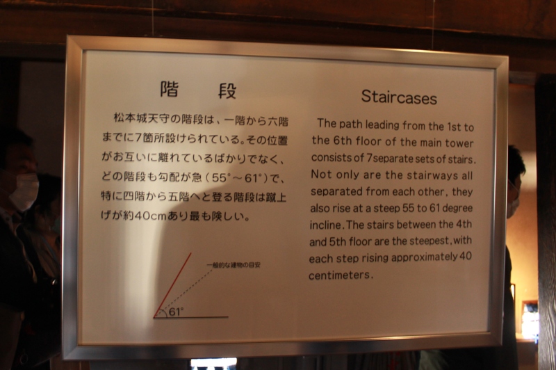 松本城では最も急な61度の階段となってます