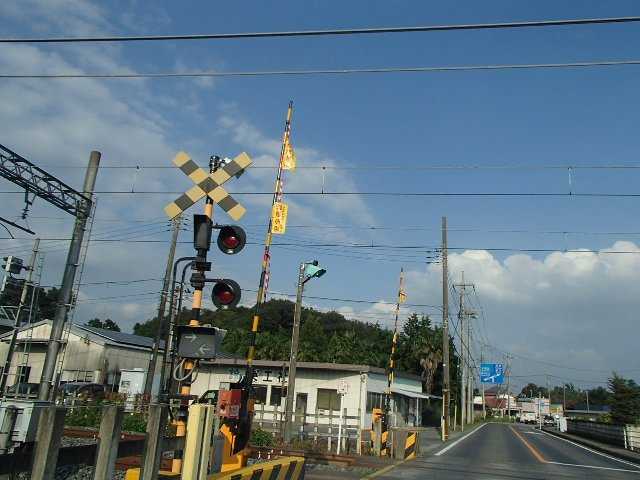 車の通りの多い踏切の脇には