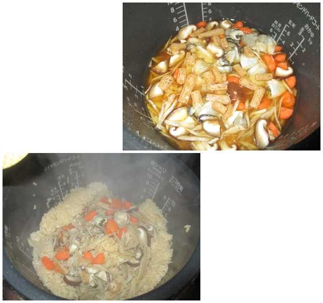 人参 シイタケ ゴボウ 油揚げを切って🔪