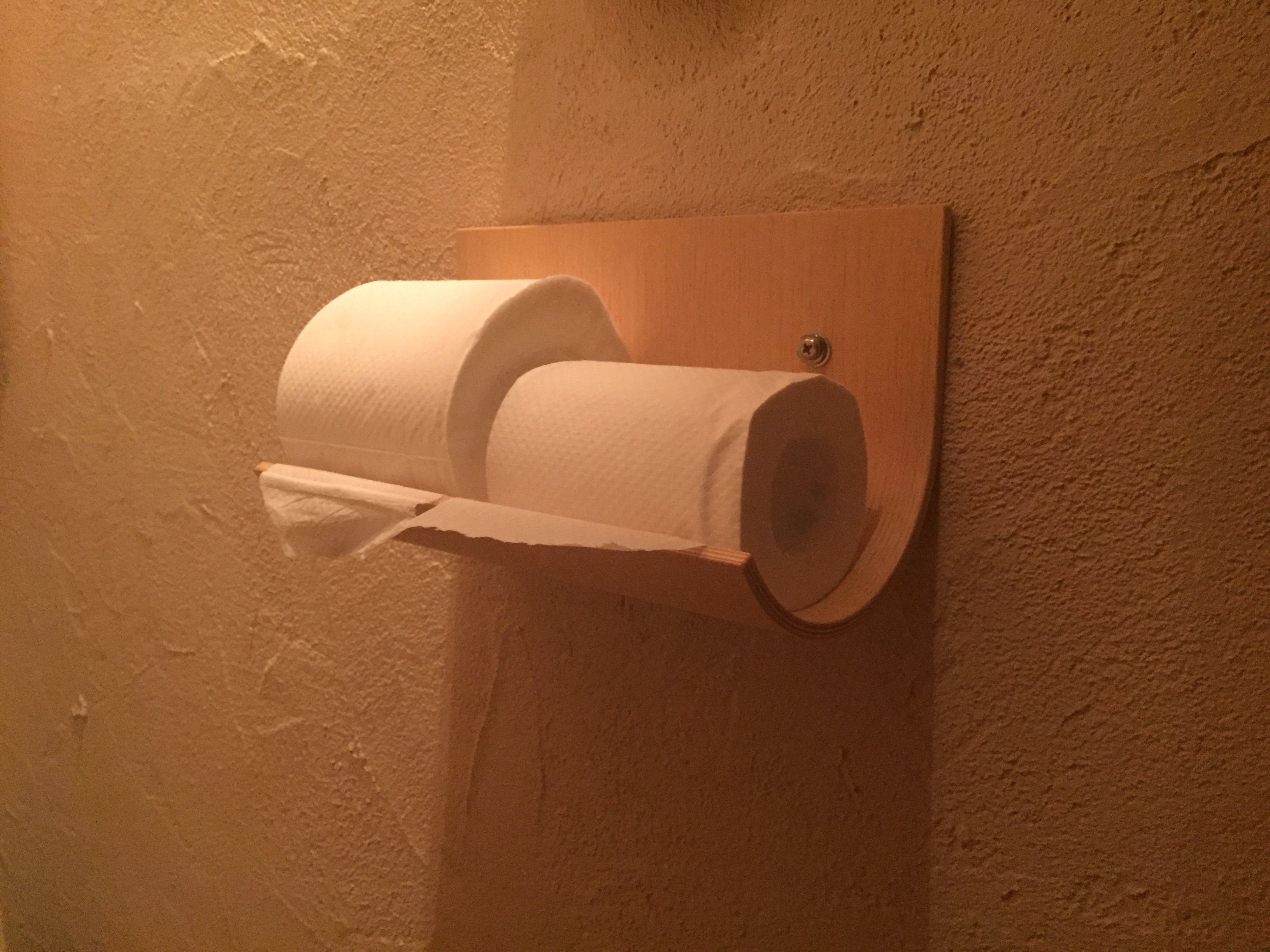 皆様のレビューこんにちは。少し前の話なのですが、DIYでトイレを改修しまして、(自分では)おしゃれなトイレに仕上がったんじゃないかなぁと思っておりまして、その時にチョイスした、ワンポイントおしゃれパーツを紹介したいと思います。↑こちら珪藻土の壁に天然木の薄い板を曲げて作ってあるトイレットペーパーホルダー。実は、これは、元々、ペーパーホルダーではないんです。元々は、キッチンペーパーホルダーなんです。それを、流用しまして、ペーパーホルダーとして使用しております。上の写真のように通常とは逆にトイレットペーパーを置きます。スルスルと引っ張って適度な所で木の端でペーパーをカットすることができますよ。使い勝手もすごくいいです。DIYにて塗り込んだ珪藻土の壁とマッチしてさりげない天然木の雰囲気がより、雰囲気を出してくれています。トイレの照明も明るさを調節できるようにしておりますのでちょっとした料亭のトイレみたいな雰囲気です。皆様のレビュー(←やはりペーパーホルダーとして使用されてる方はいないみたいですね^^;)遊びに来てくださった友達からも好評でウチの家のトイレもこんなオシャレにしたい!と依頼が殺到してます^^ちょっとしたパーツの流用でトイレがおしゃれ空間に早変わりです。よかったら皆さんも試してみてください。↓よろしかったらこちらもご覧ください。↓DIYでトイレをお洒落な居酒屋風に!その②【今回のパーツ】↓裏に両面テープが付いています。【KITCHEN PAPER HOLDER】キッチンペーパーホルダー テープタイプ☆表面に天然木の突板(薄い板)を張り、くるっと曲げた100%木製の商品です。本物の木は風合いが違います♪↓こちらは裏にマグネットシートが付いています。【KITCHEN PAPER HOLDER】キッチンペーパーホルダー マグネットタイプ☆表面に天然木の突板(薄い板)を張り、くるっと曲げた100%木製の商品です。本物の木は風合いが違います♪これまでの自分。これからの自分