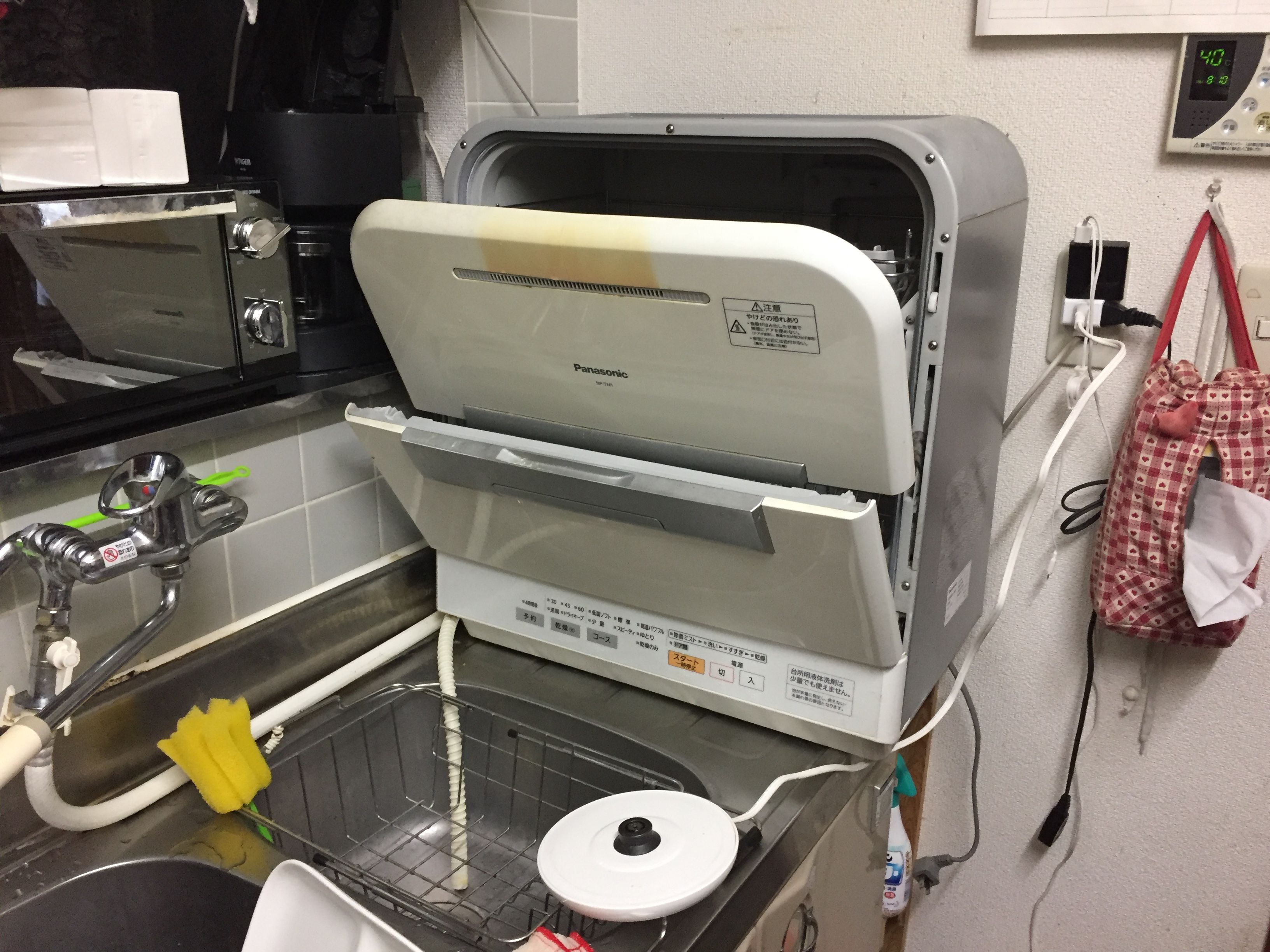 こんにちはもうかれこれ6年以上使っていると思われる我が家の食器洗浄機。↓↓今でもしっかり洗浄、乾燥まで完璧にしてくれるんですがあまりにもモーター音がうるさく、いつ壊れてもおかしくないような音を台所で奏でていました。(かなりうるさかったです^^;)ホント、すごい音で会話もできないということで、NP-TM9-W【税込】 パナソニック 食器洗い乾燥機(ホワイト) 【食洗機】 Panasonic [NPTM9W]【返品種別A】【送料無料】【RCP】↑これ^^買ってみました。【スペックはメーカーHPより抜粋してます】---------------------------------------------------------------------------------容量食器点数40点オートリスタート機能○パワフルコース○お手入れ○80℃すすぎモード○洗浄ノズルトリプルブーメランノズル・ダブルアームノズル運転時間※150Hz84分60Hz79分標準使用水量約11L(標準コース)運転音50Hz35.5dB60Hz37.5dB消費電力量約800Wh消費電力50Hzモーター65W最大消費電力量1165W60Hzモーター85W最大消費電力量1185Wヒーター1100W外形寸法(幅×奥行×高さ)550×344×592mm質量約19kg庫内容積約49L給・排水ホースの長さ給水1.2m排水1m搭載コース●標準●標準+80℃すすぎ●パワフル●パワフル+80℃すすぎ●スピーディ●スピーディ+80℃すすぎ●お手入れ●お手入れ+80℃すすぎ●少量●少量+80℃すすぎ●乾燥のみ-------------------------------------------------------------------------------------それでは取り付けてみます。さっそくやってきました。箱から取出し。同じ場所にセット!あっさり完了です^^付属部品は、給水ホースの接続と排水ホースの接続のみ。排水ホースは付近のシンクへそのまま放流!給水は台所のシングルレバーの給湯側より分岐です。この分岐するパーツが意外と便利で、後付け可能なパーツなのです。↓これ壁付混合栓分岐用!マルチ分岐水栓(自動閉止式分水コック付)そこそこの金額するんですけどね^^;以前、食洗器を取り付けるとき、このパーツを水栓の間ににとりつけておいたので今回は、家の水道全体を止めず、ワンタッチで簡単に取り換えることができました^^ほかにもいろんなタイプ出てますよ。自在水栓用!マルチ分岐水栓(吐水パイプ根元取付用、切換弁型)↑こちらは、ごくごく普通の水栓から分岐する場合のパーツ【送料無料】 カクダイ ワンホール用分岐水栓(TOTO用セット)[789702T3]↑こちらは今どきのシングルレバー用の分岐水栓ということで無事、試運転も完了し嫁さんへポイントアップの仕事となりました。とっても静かです^^扉を開けた感じです。中の写真って意外と各メーカーのHPにも乗ってないんですよねガチャガチャした家ですいません^^;