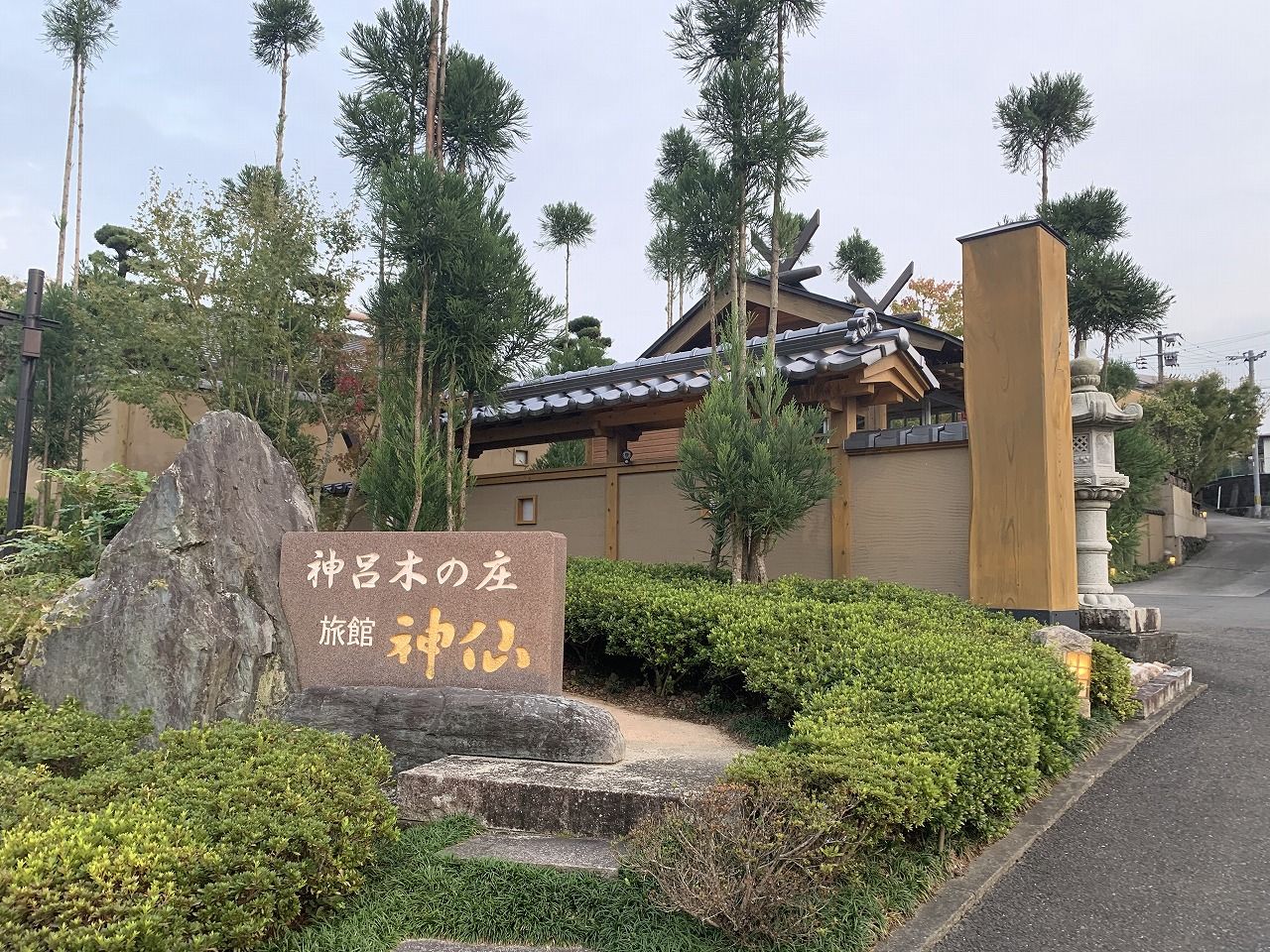 2019年10月の末に宮崎県、高千穂の「高千穂 旅館 神仙」に宿泊してきました。純和風旅館ですこぶる高級感がありお客への対応も高品位なものでした。外国人観光客には「ザ・日本」を感じていただける旅館ではないでしょうか。門構えも素晴らしい。和のテイストがふんだんにあしらわれています。エントランスというのでしょうか庭園の石畳を渡りフロントへと導かれます。手荷物など全てスタッフの方が持って下さり至れり尽くせりのVIP待遇です。お庭の池には立派な鯉も泳いでいました。受付を済ませ部屋へと案内されました。●お部屋玄関前の小さな子棚には一輪挿しとフリードリンク畳の広い部屋へ案内されまずはウェルカムドリンクとして抹茶と口合わせをご用意していただきました。甘さ控えめの和菓子と抹茶の苦みが程よく旅の疲れを癒してくれます。縁側になるのでしょうかね少し狭めですが、ゆったりと庭園を眺めながらお茶やコーヒーを堪能するにはもってこいの場所です。時間がゆっくりと流れる瞬間ですよね。床の間には何と書いてあるのか凡人の私にはわかりませんがさぞかし立派な掛け軸が。お香立てもさりげなく置かれています。洗面所はこじんまりとしています。必要最低限のものは全て揃っていました。窓からの景色はどこを開けても坪庭や庭園が眺められ、心が和む場所です。洗面の奥はトイレです。洗面の反対側には内湯というのでしょうかごく普通のユニットバスがありました。そして、この部屋専用の露天風呂!風情があっていいですね。ゆったりと温もることができました。階段のところに吊るされているでっかい筆。芸能人の方がテレビでよくやるでっかい書道の時に使用されるサイズですね。これ。夕食まで、ほんの少し時間がありましたので近所をぶらりとしてきました。あたりも薄暗くなり庭はライトアップされ、これまた、しっぽりとした雰囲気。いいですね。●さて、夕食です。完全個室(掘りごたつ付き)の和室に通され夕食がスタート女将さんがわざわざご挨拶にいらしてくださいました。ありがたい事です。しかし、お品書きが達筆すぎる!なんの料理がくるのかよくわからない反面何が出てくるのか楽しむこともできました。先付けになるのかな?御造りです。こちらはメインの高千穂牛^^赤身なのに柔らかくてジューシーそれでいてサラリとしていてあとを引かないサッパリ感。いい肉はサラッとあっという間に無くなってしましますね。しっかりとお酒も嗜み、ご馳走に舌鼓を打ちながら楽しい時間を過ごしました。この後、部屋に戻り、夜空に輝く月を愛でながら露天風呂を満喫しました。●朝食昨日とは違う食事処に案内されました。昨日は掘炬燵でしたが、今朝はテーブルです。しかし、床暖房で足元はぬくぬく。ガラス一面張りの向こうには坪庭。穏やかな空間の中、立派な朝食を頂きました。この宿はゆったりと過ごすことが出来ます。時間を気にせず、時計を外し、スマホは財布と一緒に金庫へ。時間に縛られる毎日から解き放たれたい!そんな空間を、ものの見事に演出してくれます。お値段は少々、張りますが、それに見合った本当に、ゆったりとした時間を味わうことができます。都会の喧騒を忘れさせてくれる1つ上のゆとりを楽しむことが出来ました。まさに「優雅」高千穂 旅館 神仙