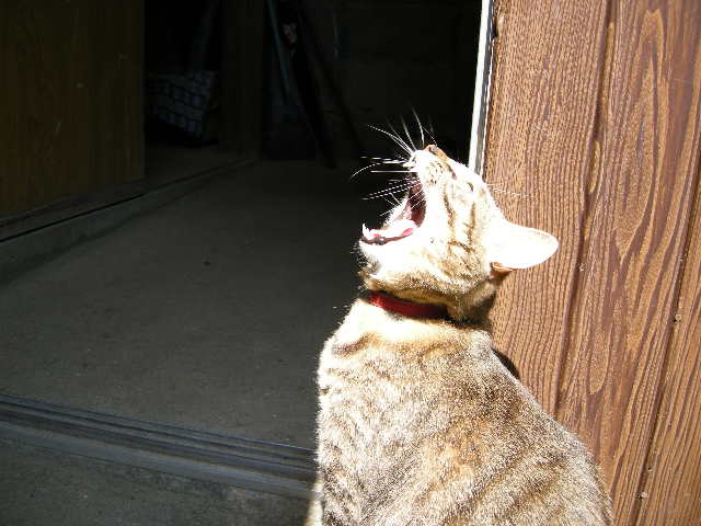 いち にの さ~んで、おはようさ~ん今日も元気に、「ネコ劇場」始まるよ~ (いつから、ネコ劇場になったんや)最初は、きくちゃんご挨拶。「もう始まりますか?」「カメラ、歪んでません?直しときますよ~」さあさあ、みなさん出番ですよ~「昨日も遅くまで仕事やってんで~」「もうちょっと、寝かせて欲しいねんけど」「いつまで、寝てるの ごはんに行くよっ 行かない子は、置いていきますよっ」「えっ、そりゃ、たいへんだっ」「すんませ~ん お先に、いただいてま~す」「あたしにも、残しておいてよっ」「んなもん、早い者勝ちでっせ」「あ~ 食った食った」「ごっつぉ~さ~ん」「明日も見にくる?」「・・・。みてほしいけど、今は、見ないで~」ちゃんちゃん おわり