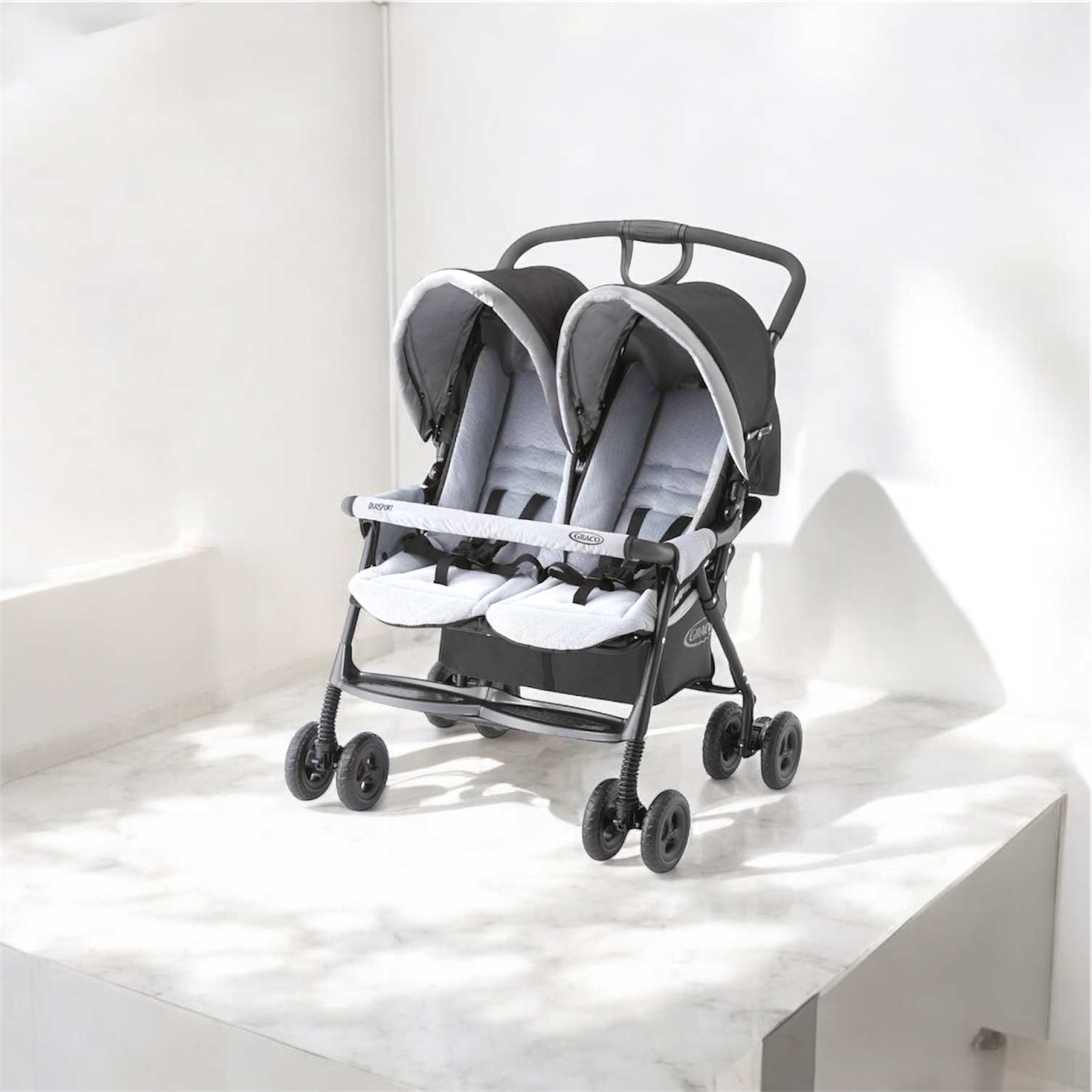 【ママ割+店舗限定エントリーで全品さらにP12倍】グレコ デュオスポーツ ジェミニブラック GRACO 二人乗りベビーカー (背面タイプ) 専用レインカバー付【P/N】【送料無料 沖縄・一部地域を除く】