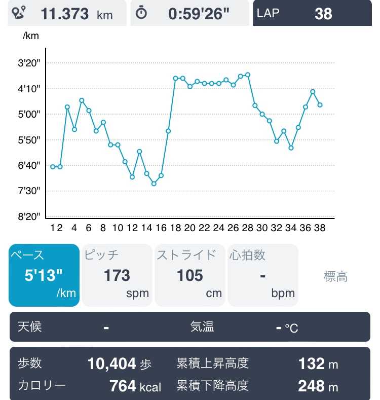 今日は、11.4kmかな。 途中、300m❎10本疲れた😅💦 調整急がなきゃ😅