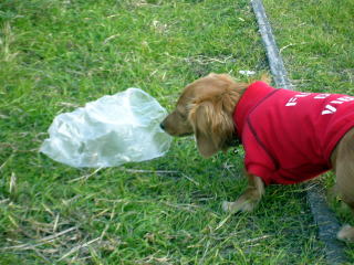 龍之介はビビリちゃんだから変身する新種、カンガルー犬に・・・( ̄人 ̄;)人気blogランキングへ