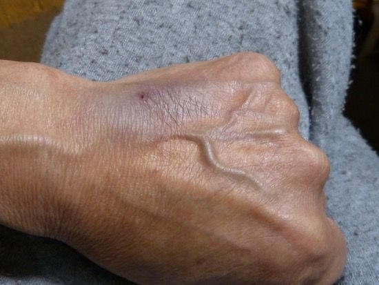 訪問の挨拶代わりに、私の手を引っ掻いてまた帰って行きました。