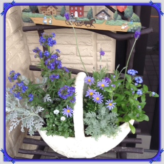 誕生日の花、植えてみました。 右から・シノグッロサム(シナワスレナグサ)・ ブルーデージー ・レースラベンダー・忘れな草ブルームッツ(中性) 前の白い花 ネモフィラの白・シルバーレース(シロタエギク) その他の花はまだ、綺麗に咲いてないので、そのうちにUPします。 自画自賛です。 まだまだ、春はこれからです。