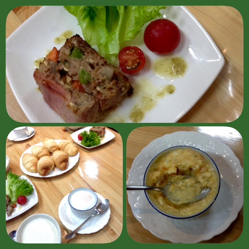 昨日は、楽しいパンの日でした。 【野菜のテリーヌとブロッコリーにんにくソース添え】 合いびき肉、にんにく、玉葱、マッシュルーム、人参、大根、さやいんげん 生シイタケ、くるみ、ロリエベーコン、卵、生クリーム、バター 凄く、美味しかったので、娘が帰って来たら、作りたいと思います。 上、【大福パン】 パンの中に大福餅をさくらあんで摘んだで、小豆入りパン生地で包みました。 左下【塩パン】 岩塩を焼きあがってから、パラパラと・・・ (エッグスラット) マッシュポテト、生クリーム、卵、バター、塩、胡椒、ナツメッグ ココット型に入れ中心に卵、10分蒸す。スプーンで潰して、パンに付けて 食べる。1番上の写真の右下 右下【オレンジトップ】 ココア、ホワイトチョコチップ、オレンジミンス、ヘーゼルナッツ 【タンドリーチキンと彩り野菜パン】 【パトネウ‘‘ェ-ル】 抹茶パウダー、水あめ、抹茶チョコレート、生クリーム、 ホワイトチョコレートなど。 本当はねだけど・・・ みんな、美味しいパンでした。今回のメインのお話は、 ひとり平穏死、お墓など 日本の未来について、そうだ、そうだと言いながら、 笑いながら話し合いました。 来月は、ゴールデンウイークでお休みです。 今日も あ~あご訪問