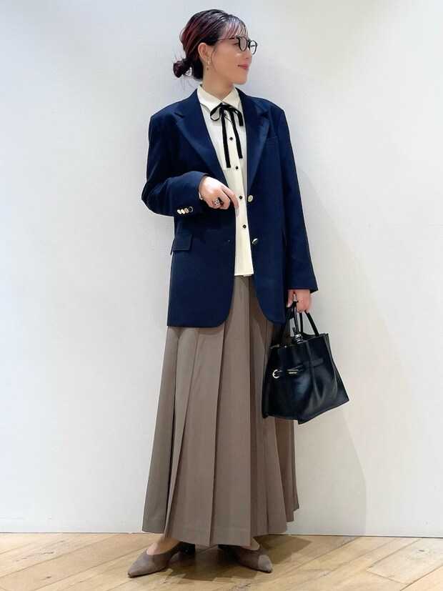 定番のプリーツスカートは、今年は「幅広」がトレンド!