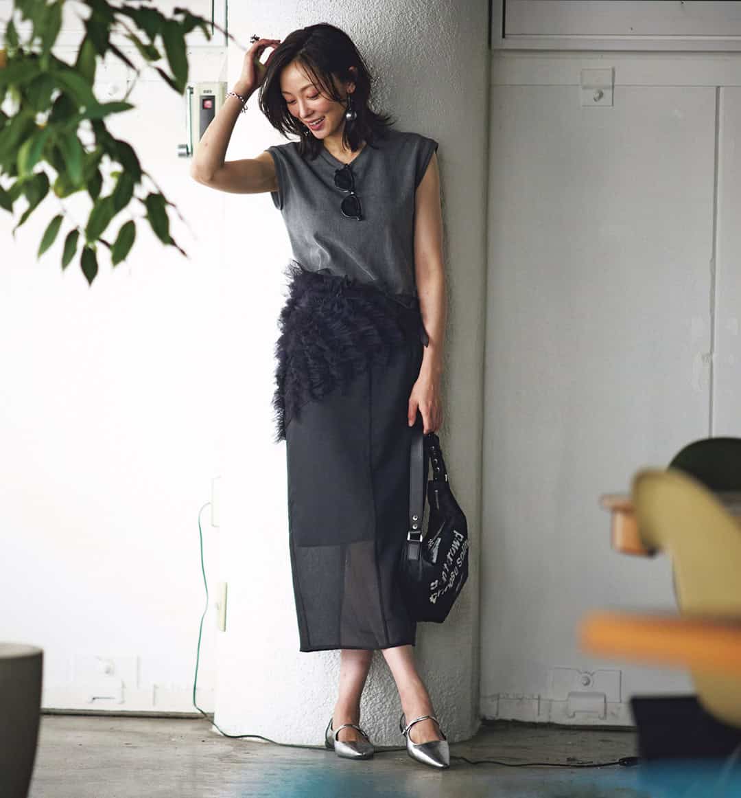 忙しい朝は「ほぼ黒」で即決!ジレ・オールインワン・シアー・主役スカートの黒多めコーデ12選。40代が時短・細見え・上品見えコツを解説。
