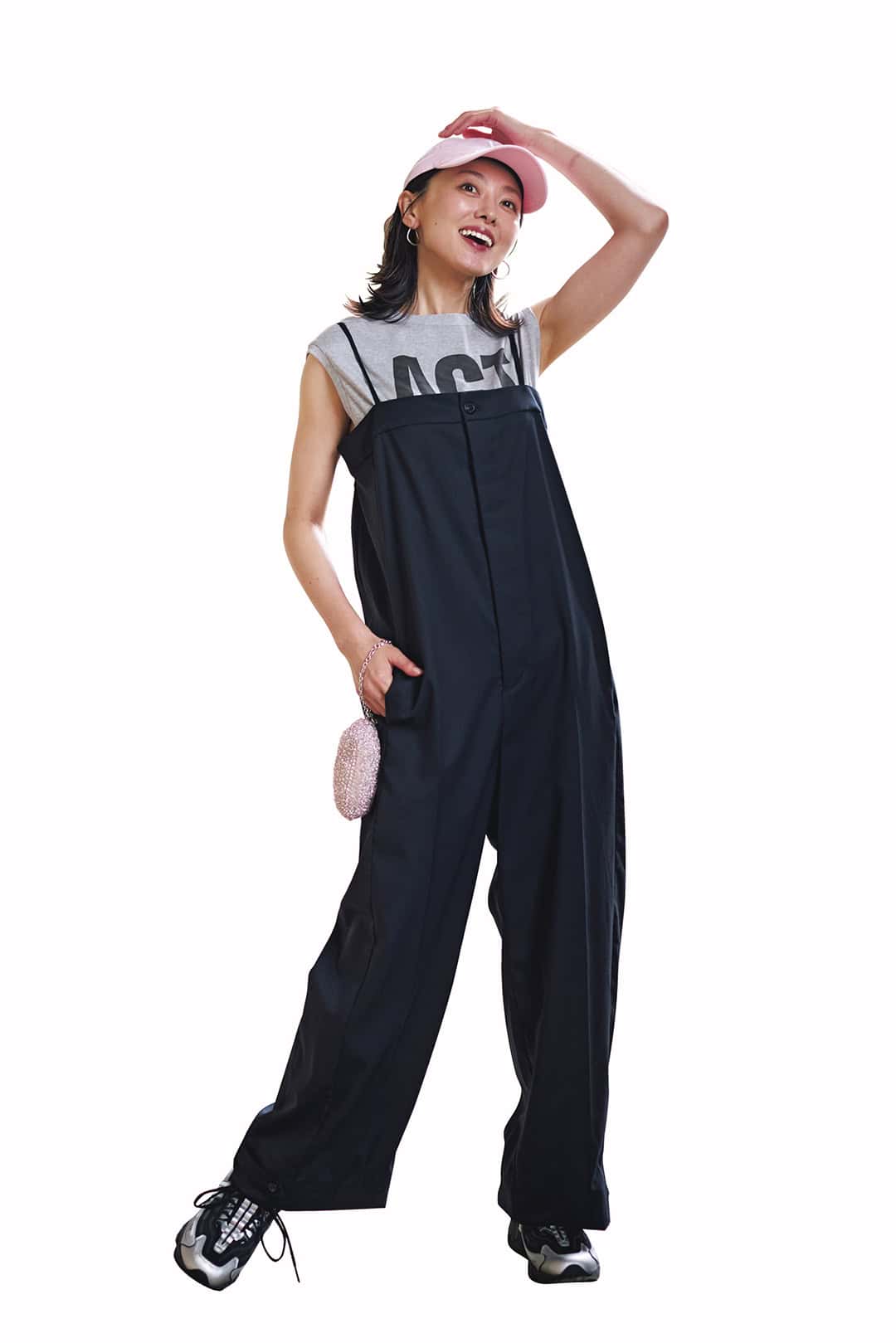 ベーシックはあえて崩すのが洒落見え。キャップ+chunkyスニーカーで週3いけるきれいめカジュアル。