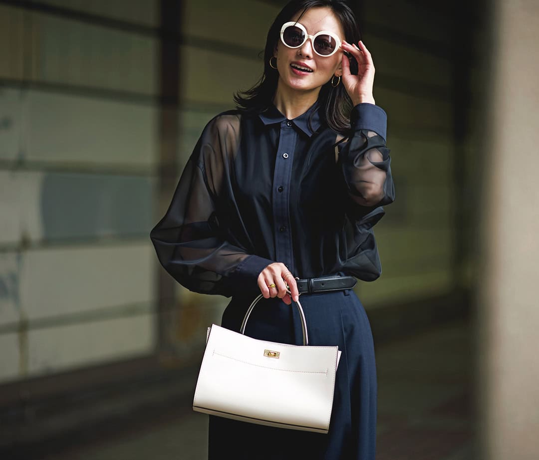 “上半身で盛りすぎ”は禁物。ほぼクロなら大胆デザインも即こなれ。
