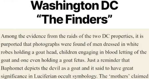 これらの物件を捜査した結果、児童ポルノの証拠や、3人の子供と3人の白装束の男が2頭のヤギをバラバラにしている写真が発見されたと報じられている。