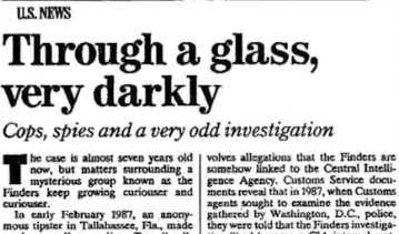 最終的に警視庁のメンバーから、 ファインダーズは CIA の保護下にあり 、 CIA は「内部問題」だと主張して管轄権を主張し、事件全体に「秘密」のレッテルが貼られたと告げられた。