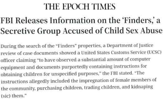 マルティネスは、子供の売買計画、中国大使館を通じた香港からの子供の注文、ファインダーズの女性メンバーの孕ませに関する指示、マインド・コントロールとテロ戦争戦略をテーマにした書籍の蔵書などが証拠に含まれると報告した。