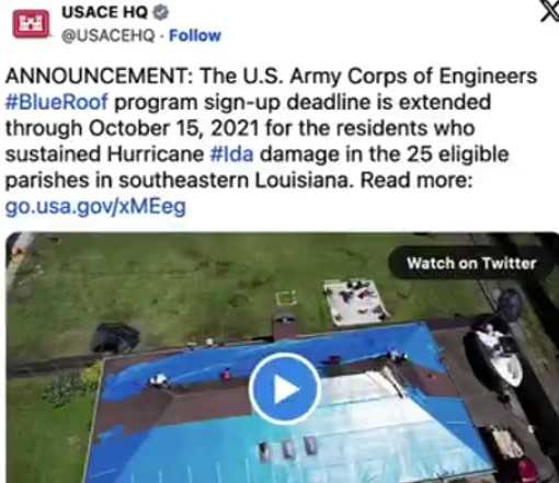 米陸軍工兵隊は、ハリケーン「アイダ」の復興期間中、できるだけ多くの家屋を居住可能な状態にするため、無料の「青い屋根作戦」プログラムを復活させます。