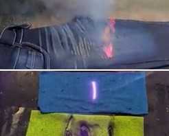 赤色レーザーでは青色が焼け、青紫色レーザーでは青色が焼けない、
