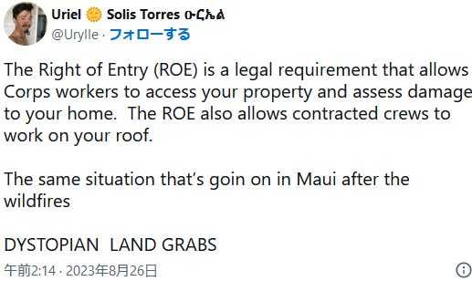 TwitterユーザーUriel(陰謀論者)は、住民がROEフォームに署名しなければならないのは奇妙だと感じているようです。