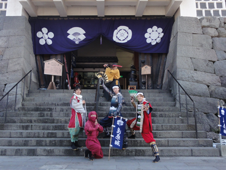 「我ら、島原城七万石武将隊!」「ヤー!!」掛け声も勇ましくにおさまってくれた武将隊の面々写真撮らせてもらっていいですか?のオファーにささっと定位置へ立ち位置、ポーズが決まってるんですね!腹の底から出てる声にもう~超感動ですよ駐車場の誘導から、写真撮影、観光相談、帰る時は「楽しいご旅行を!」話すときは武将ことばの徹底ぶりもオトコマエ島原城に着いてから出るまで、彼女たちのおもてなしにすっかり武将隊&島原ファンになりました「島原っていいとこやな~」ちなみにタイトルの「島原と言えば~」「島原城!」は「ハイチーズ」の掛け声ネットで調べてみたら、メンバー交代があったようです交代された武将さん、お役目お疲れ様でした新しい武将さん、頑張ってください!島原城七万国武将隊の公式サイトこちらですその島原城天守です青空に白色が映えますいろんなところから島原城、行ってみましょうお堀から島原城蓮と石垣の緑。お気に入りのアングル堀端は桜も島原駅から島原城駅出たらズドーン!言葉は要りませんちょっと離れて白土湖から島原城噴水が止まったと思ったら現れました最後に、芝桜公園の帰り道からの島原城町に近づくにつれて見えてくるってのがいいです島原城では平成27年3月31日まで『島原城天守閣復元50周年記念』イベントが企画開催されています。公式サイトはこちら島原日記続きます