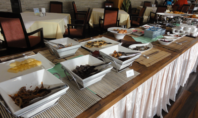 朝食はビュッフェスタイルレストランは朝日があたって気持ちいい和惣菜。筑前煮やひじき、島原のかまぼこイワシのマリネが美味でした洋惣菜。スクランブルエッグ、ウインナーパン。シリアルおかわりしましたなぜかたこ焼きデザート。フルーツ、ヨーグルト、プリンサラダ。野菜おいしくてごはん、味噌汁、カレー。ジュースにコーヒー、紅茶紅茶はティーパックで4種類。ダージリン、アールグレイ、アップルティー、もひとつちょっと忘れたお部屋に紅茶がなかったからこそっとお持ち帰りで、ごはんバージョン、と最終日は気に入ったものでカレーにシリアル、海藻サラダ滞在中、毎日同じ内容だったのが少々残念あと、料理に表示がないので、島原のものもそれとわからずこれまた残念「島原産〇〇」って書いてもらうだけでなんですけどね夕食も1回いただきました洋食のコース2,500円とは良心的アミューズ続いてオードブルは食べちゃったスープ、パンお魚デザート、紅茶ソースが美味しくて、気軽に食べれてなかなかの満足度でした他にも和定食などが2,500~3,000円くらいでありました公式サイトにメニューが出てますのでリンク貼っておきます → 【公式】シーサイド島原その他、島原でチェックした食べ物屋さんは後日アップします